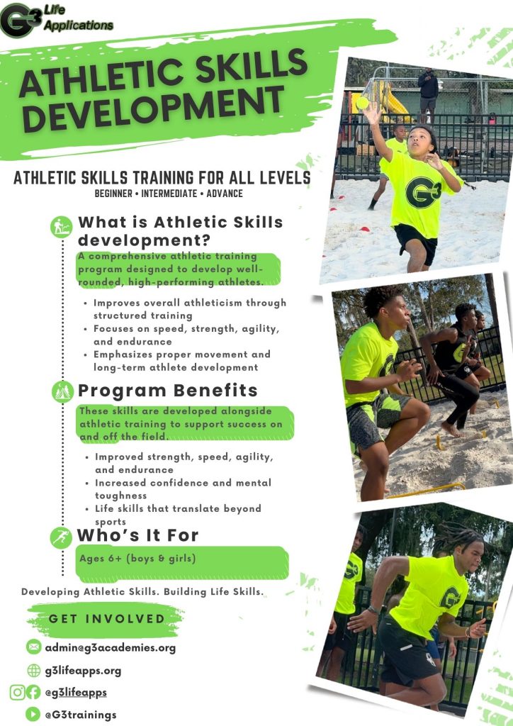 Athletics provide a powerful platform for teaching life skills. Athletic Skills Training helps youth develop confidence, discipline, and leadership that extend far beyond the field or court.
